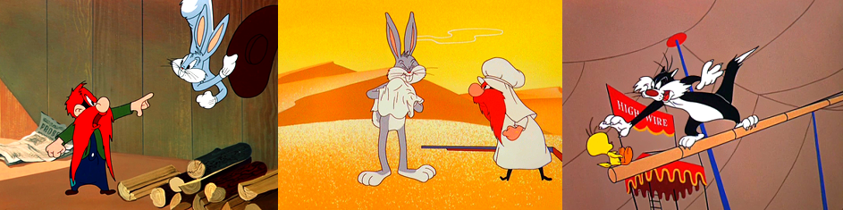 The musical phrase utilised for all of the titles of all Bugs Bunny cartoon shorts, the Tweety-and-Sylvester cartoons with them posed on stage and Sylvester holding Tweety in his hand, and most cartoons with characters other than the regulars, went as follows: