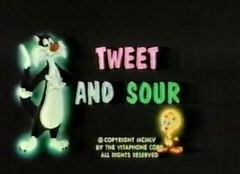 Also worth noting was the inexplicable changing of title cards of certain cartoons which had been running on The Bugs Bunny/Road Runner Hour since 1968, not to alter the spellings of the titles, but to change the poses of the characters. In the 1968-9 season of The Bugs Bunny/Road Runner Hour, "Tweet and Sour" and "Hyde and Go Tweet" were titled with a behind-a-tree Sylvester eyeing a fleeing Tweety. However, when these two cartoons were seen in the 1978-9 season of The Bugs Bunny/Road Runner Show, they were titled on a red background, with Sylvester posing to the left of the title and looking amicably ahead to the camera (in the same way as in the title cards for several of his cartoons without Tweety), while Tweety was situated on the lower-right part of the screen, facing the camera but glancing warily at Sylvester.