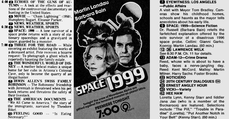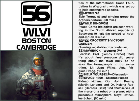 And the WCVB Boston Space: 1999 broadcast history is now complete. I found listings for Space: 1999 on WCVB in spring and summer of 1976 on Sunday afternoons.