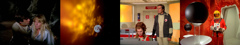 And I do have more bad news. No, nothing concerning the video restoration. That never wavers in its outstanding quality. It is the audio. The muffling in "Seed of Destruction" that I noted is, alas, not limited to just that episode. Three episodes now are quite evidently affected by deficient audio. In addition to "Seed of Destruction", "The AB Chrysalis" and "Catacombs of the Moon" qualify for this dubious honour. In fact, "Seed of Destruction" is the least bad of the three. The muffle of audio in "The AB Chrysalis" affects the music, and it warbles, varying in intensity as the music plays. The scene of the Eagle lifting off from the underground habitat of the planet and the climactic scene of the Alphans bracing for the blast wave that is expected to destroy Moonbase, has a very pronounced warble to the music. "The AB Chrysalis" had problematic audio on its DVD releases (all regions) and really has not sounded right since its laser videodisc release in 1991. I suspect that the audio on all film elements of the episode was put on inferior film stock, or on film stock that perhaps was damaged by dampness in the summer of 1976 ("The AB Chrysalis", "Catacombs of the Moon", and "Seed of Destruction" all were produced in the summer), the effects of that damage not becoming manifest until decades later. And it has worsened considerably since the DVD releases of 2001 and 2002. Unfortunately, I doubt that anything will be done now to restore the audio on these episodes. It would involve going back to Derek Wadsworth's original session recordings and mixing the music back into the episodes, and recording new foley where necessary. Alas, this Blu-Ray release will probably be the last that Season 2 will ever see.